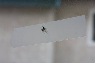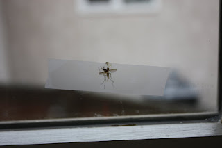 Did I mention we have a mosquito infestation in our city right now? And did I mention that BOF is horribly afraid of mosquitoes and will not touch them? Her solution….kill the mosquitoes on the window with SCOTCH TAPE!!
