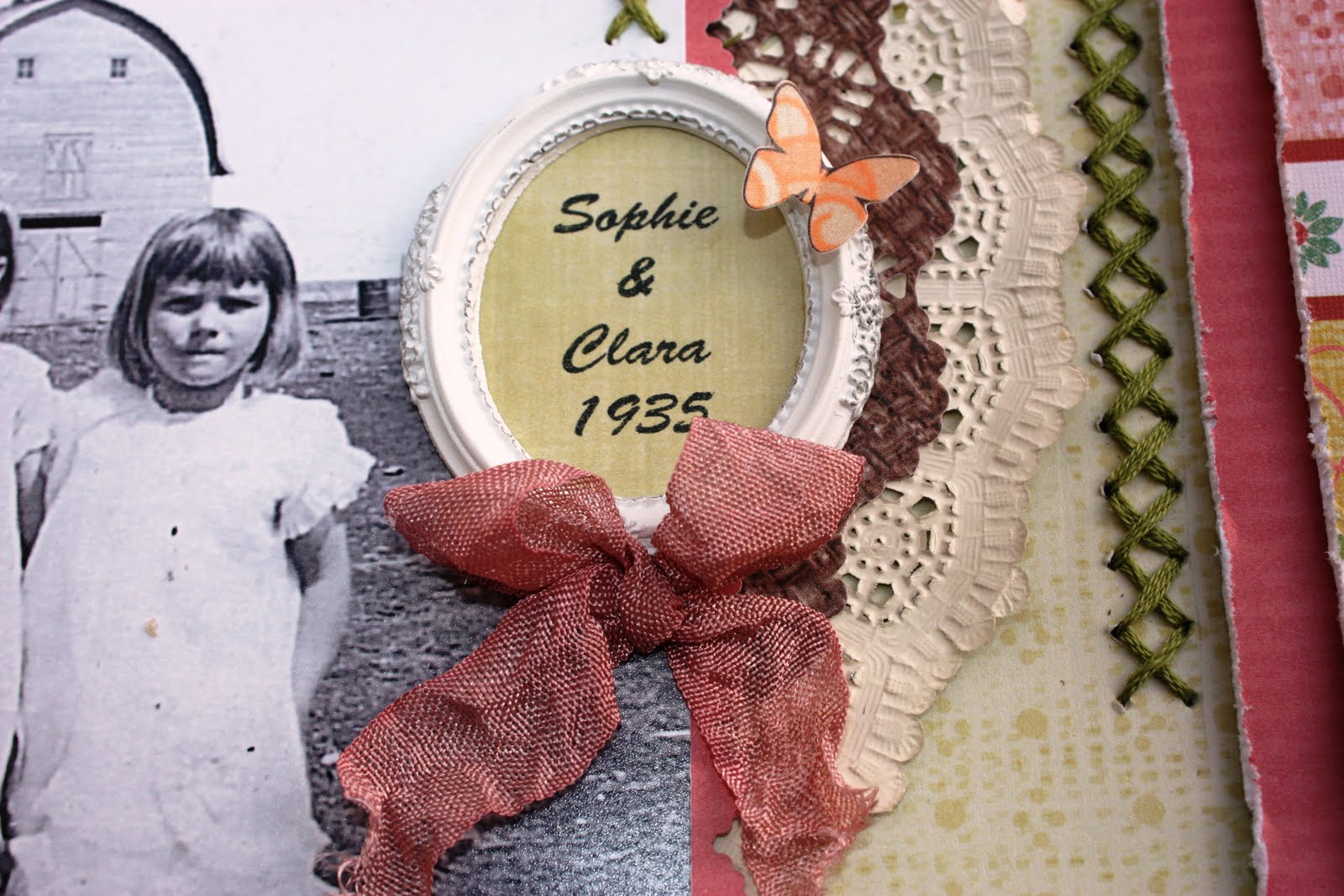 August 31, 2011 at 5:20 pm (14 years ago)Sweet and a lovely vintage feel. I especially like the hand stitching. The punching and doily add femininity and daintiness. WHat a treasure the photo is for your family heritage album! Your pages always have wonderful touches. Chicken ‘wire’ is perfect on this LO~