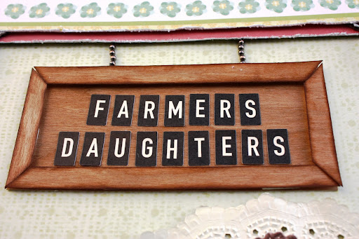That same week, my mom asked me to reprint a photo of herself on the farm as a young girl with her cousin. Right away I knew that Michelle’s papers would be perfect for a pretty heritage layout, so I decided to make a page for my mom with her photo, aptly titled “Farmers’ Daughters”.