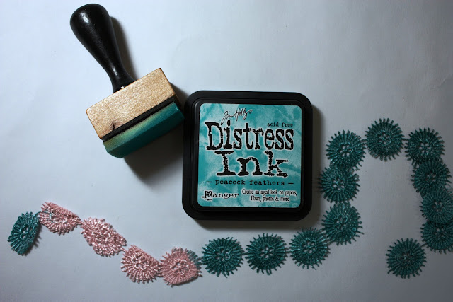 | A fine-tipped paint brush helped me colour the WP gem border sticker with Ranger Patina “Verdigris” |