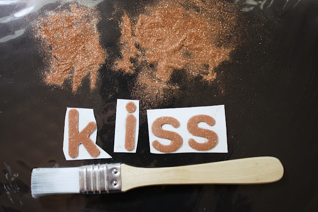 | After rubbing the glitter into the adhesive tops of the letters, I brushed them off completely. |
