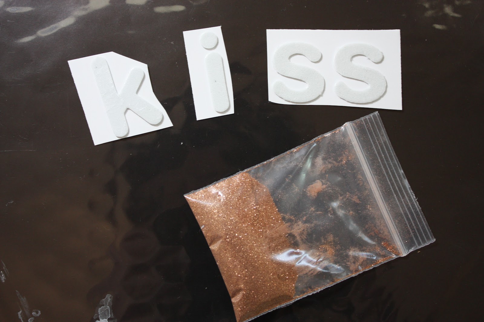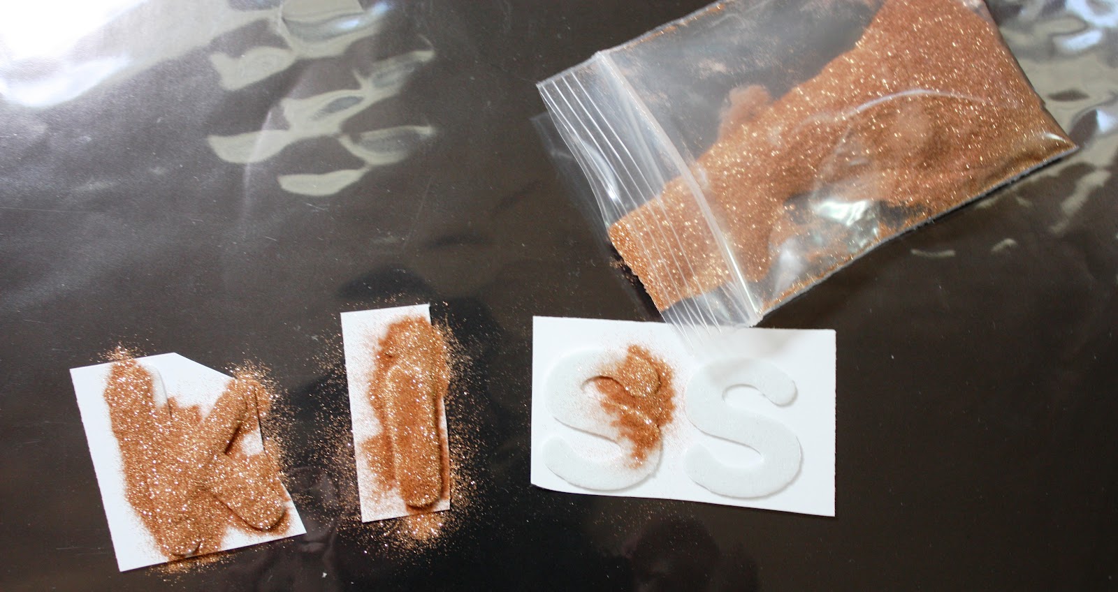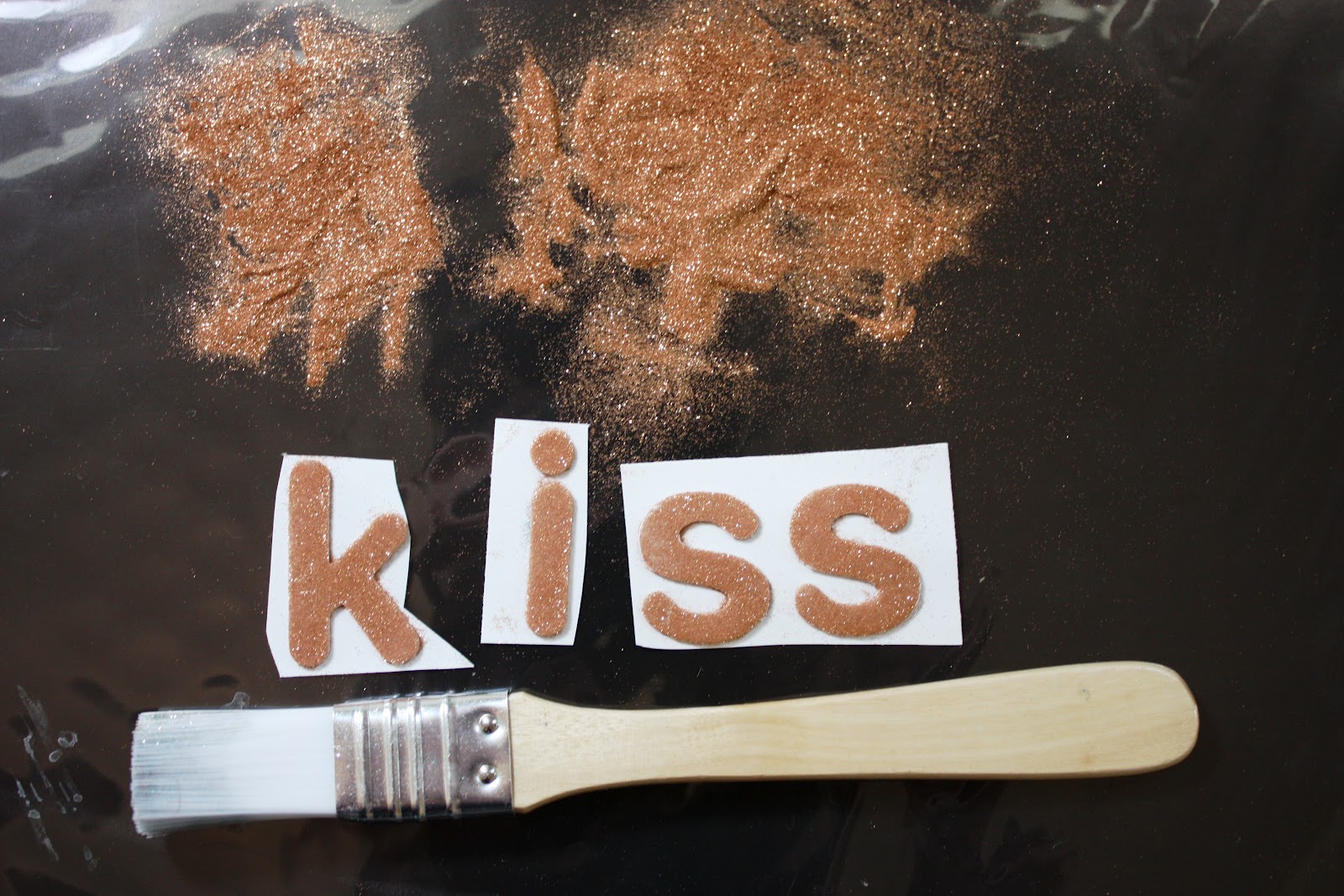 | After rubbing the glitter into the adhesive tops of the letters, I brushed them off completely. |