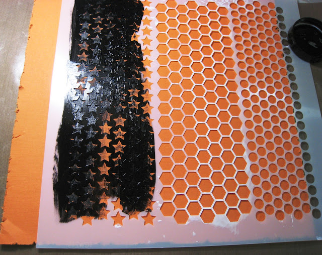 I decided to rock out and “go for the grunge” with a stencil and some black gesso…