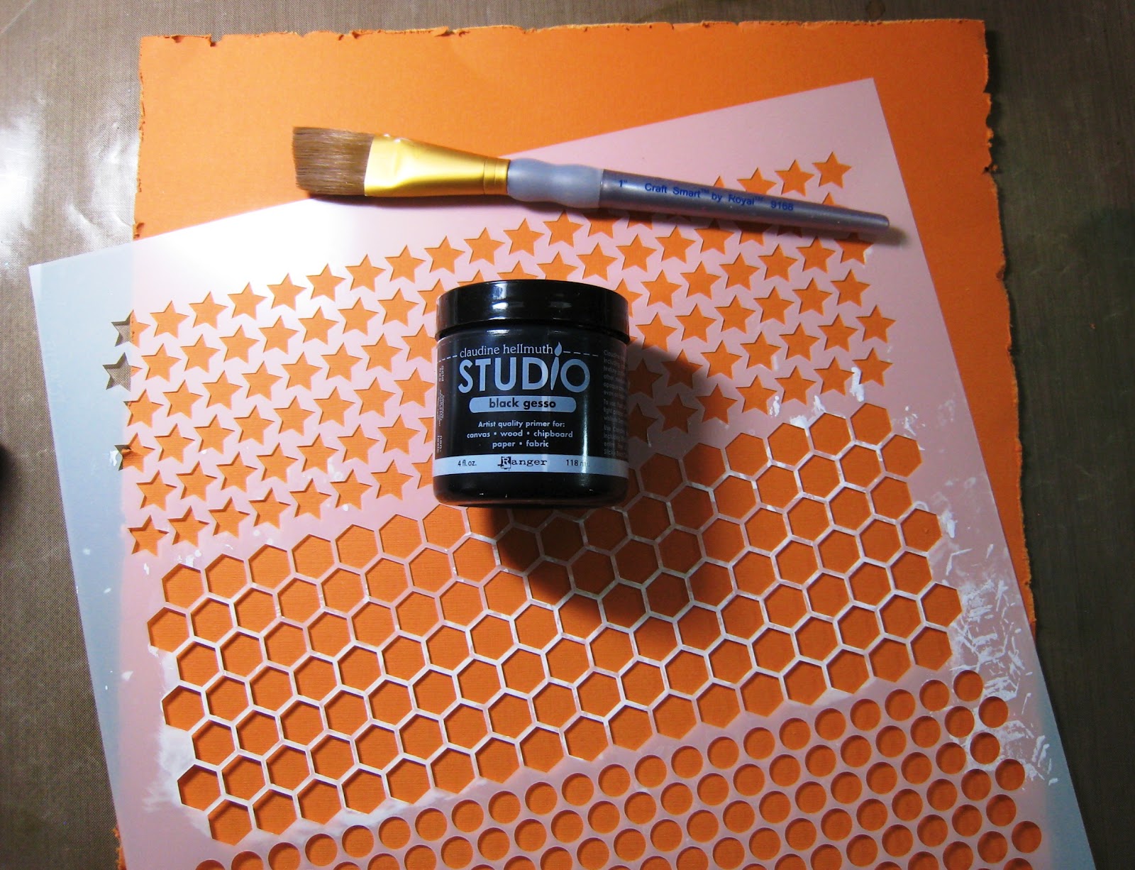 I decided to rock out and “go for the grunge” with a stencil and some black gesso…