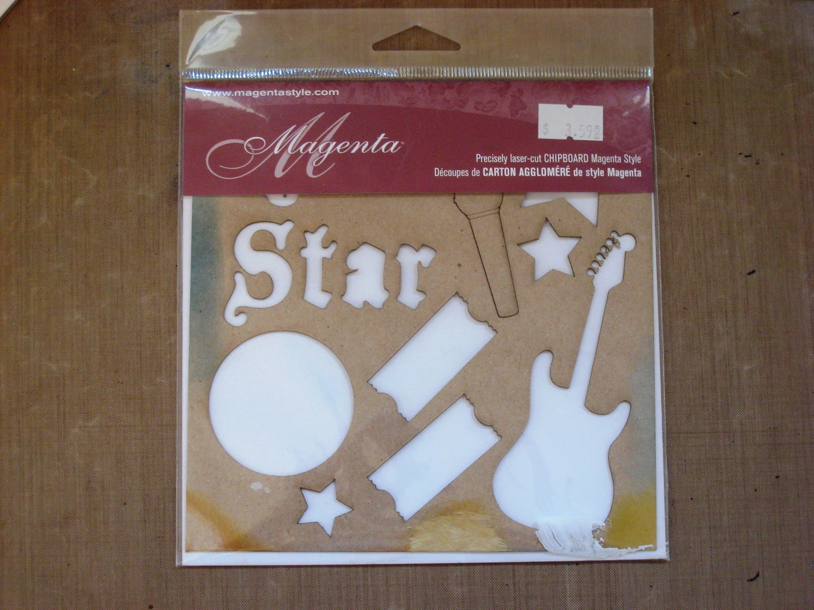 | Here’s the original package of Magenta “Rock Star” chipboard, which has other pieces missing from other projects. |