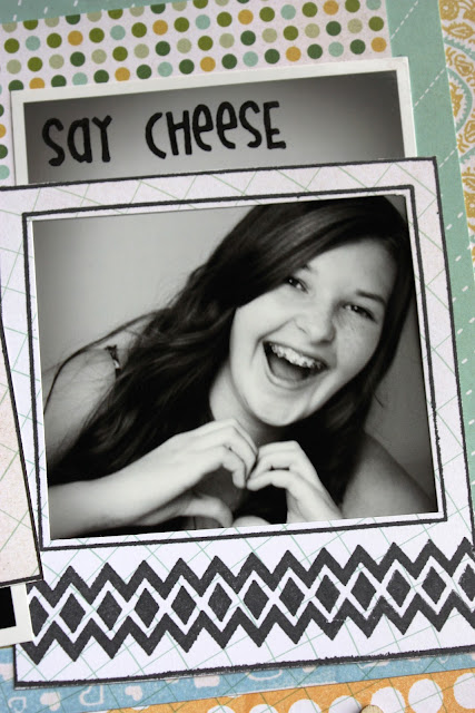 | I stamped both photo frames from the set and decided to use only the polaroid shape. |