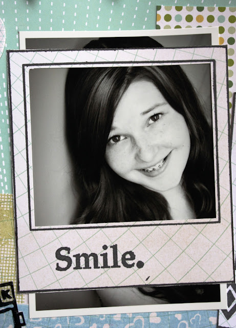| I stamped both photo frames from the set and decided to use only the polaroid shape. |