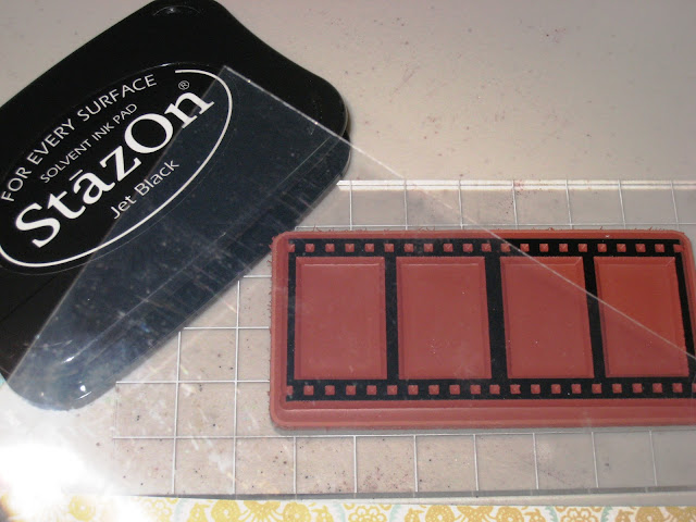 | To stamp onto transparency, use a solvent ink pad.[Is it just me or does anyone else LOVE the smell of the StazOn ink pad??] |