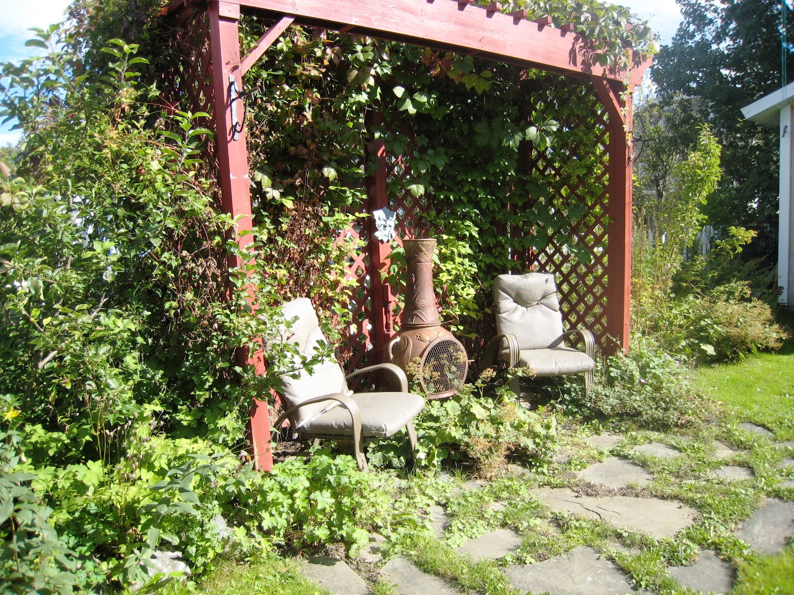 | Michelle’s backyard and garden is as pretty as I imagined! She is a talented gardener and even has a greenhouse. |