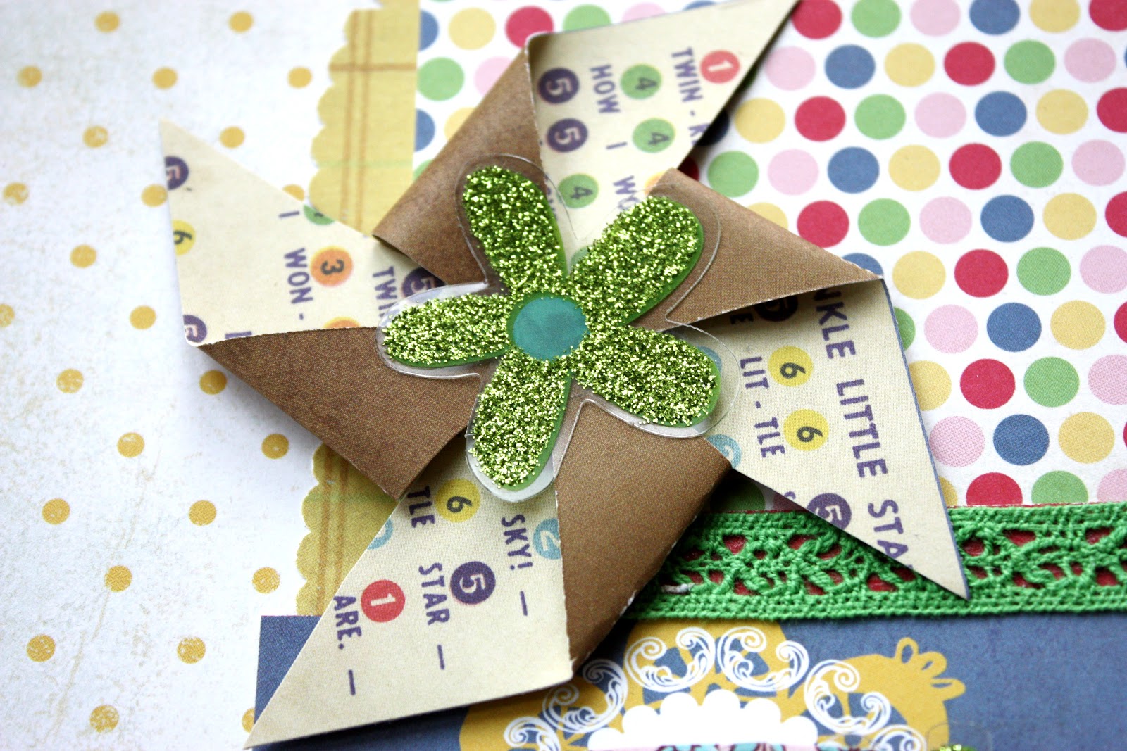 | This flower “glitter cut” serves as my pinwheel centre. |