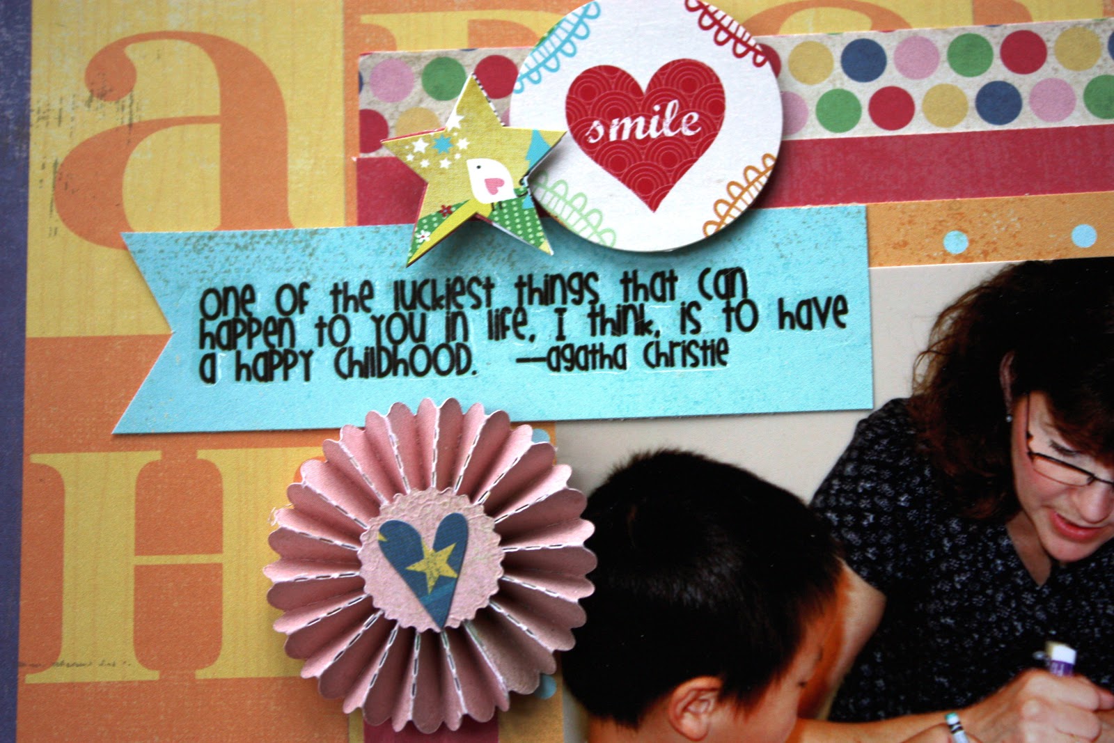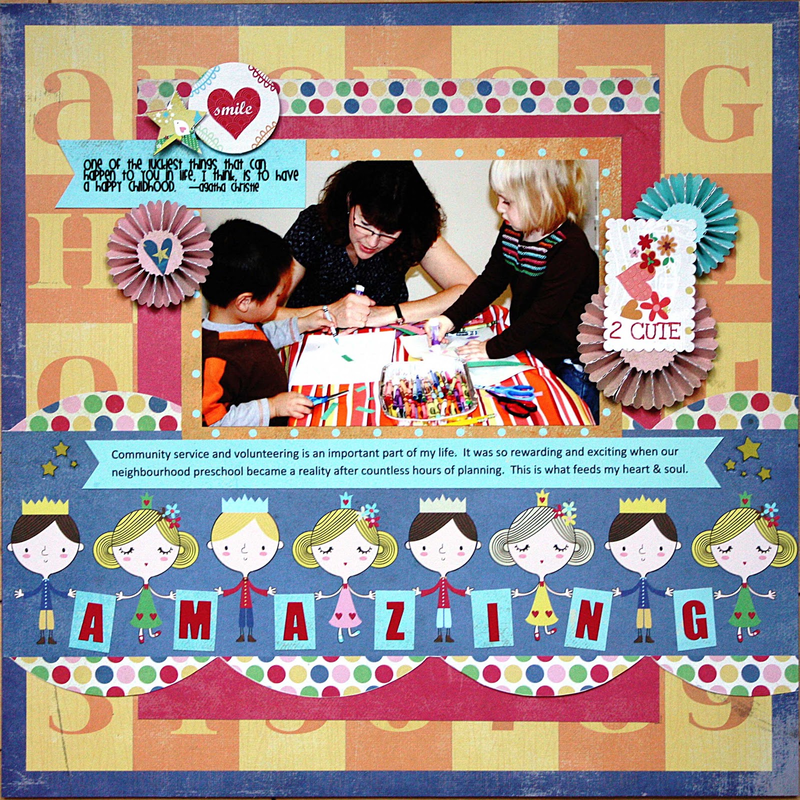 The next layout is actually about one of my passions in life: community service. But the photo is not me! ha ha ha! It’s the teacher of the preschool on the first day of class.