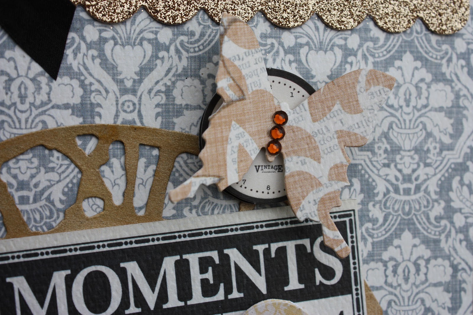 I designed this page using the gorgeous Teresa Collins “Vintage Finds”papers and embellishments found in the new November kit that is on sale now at The Urban Scrapbook.