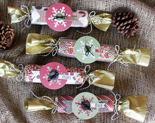 I made Christmas crackers with the Fancy Pants papers for Day 3 of the contest….