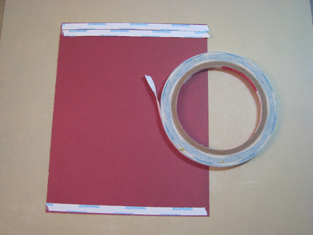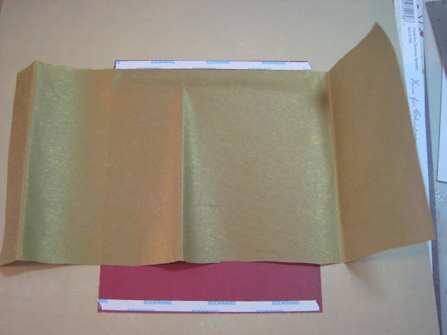 Put SookWang double sided adhesive tape (1/4″) at top and bottom edges of the paper. Put a second strip of adhesive tape under the top strip (this will hold the tissue paper in place).