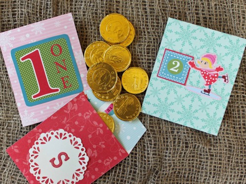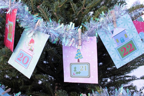 For my second project on Day 4 of 12 Days of Giving, I designed an Advent Garland using My Little Shoebox “Winter Wonderland” collection.