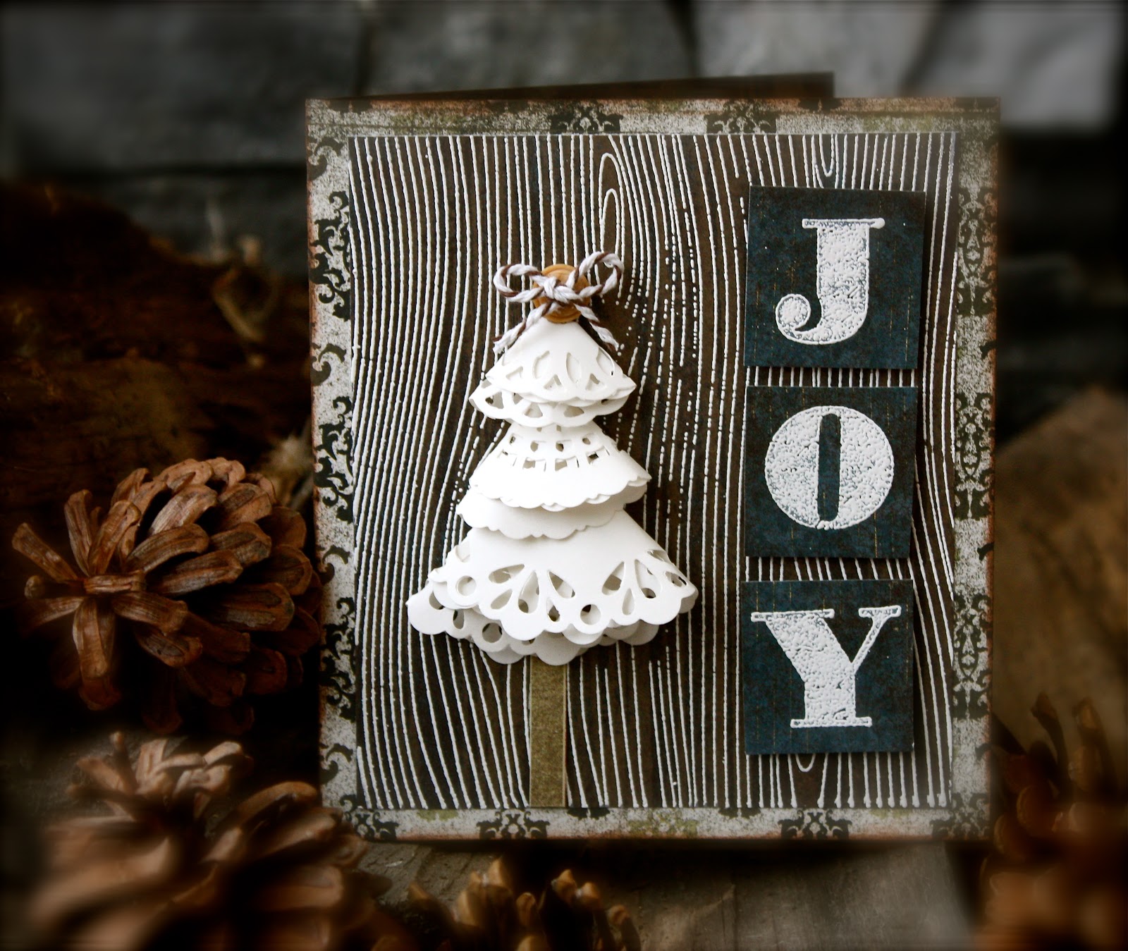| The tree is made with folded doilies cut with a Stampin Up Sizzix die. |