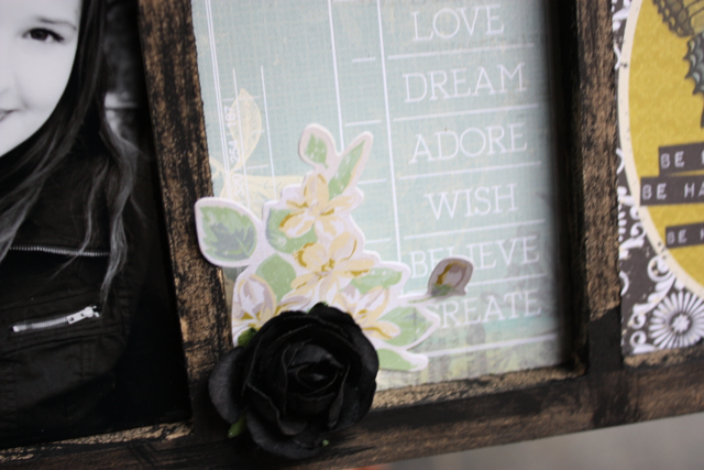 I have long admired the beautiful photo displays that scrapbookers design to showcase their family photos. Kaisercraft has a number of wonderful photo frames, and I decided to alter their “Swap Card Photo Display.”