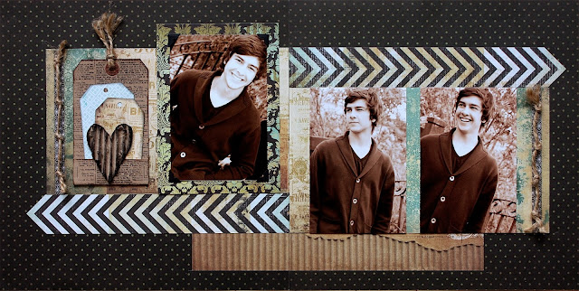 I also taught a class called “From Simple to Sensational” featuring Kaisercraft papers. First, we created a simpler, masculine double layout…