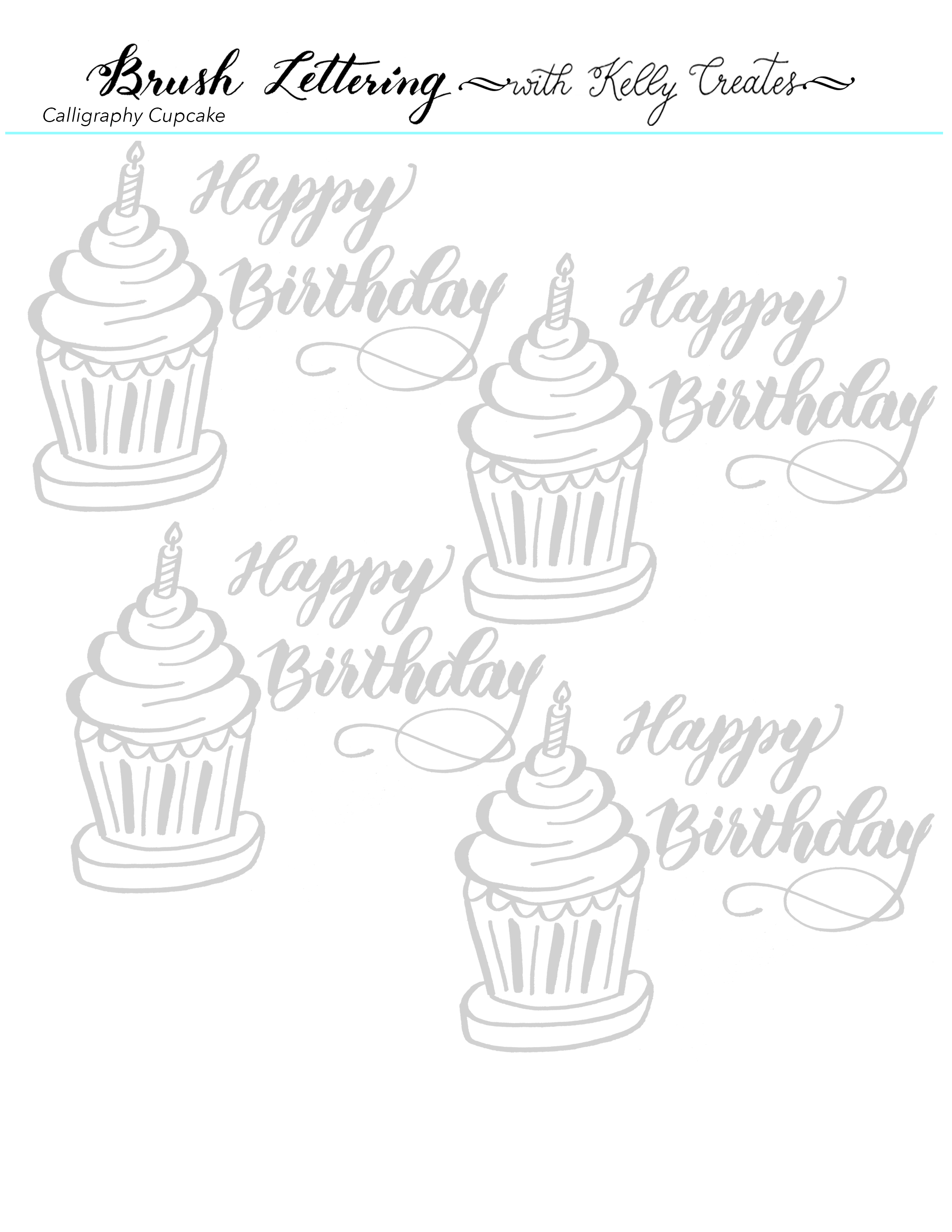 I used my Kelly Creates Medium brush pen (from the 3 pack or Deluxe Lettering kit) but you could probably use a Multicolor Small Brush tip pen or even the smaller end of the Dream Pen. Here is the YouTube video with the cupcake drawing demo. If you haven’t subscribed to my Channel, click ‘Subscribe’ while you’re watching. Enjoy the worksheet and the demo!